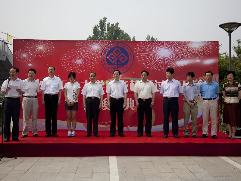 校領導孫堯東、譚向勇、盧思鋒、張德玉、謝志華、李朝鮮、張耘、和施工單位總經理李峰偉、監理單位總經理魏國棟出席了竣工儀式。一名學生代表也在主席臺前就位,竣工儀式由副校長呼文亮主持。