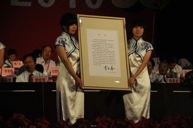 當前,我國正在加快實施科教興國戰略和人才強國戰略,努力建設創新型國家。希望你們高舉中國特色社會主義偉大旗幟,以鄧小平理論和“三個代表”重要思想為指導,深入貫徹落實科學發展觀,緊緊圍繞經濟社會發展對人才的新需求,堅持育人為本,深化教學改革,突出辦學特色,提高教育質量,努力建設特色鮮明的高水平大學,為我國進入創新型國家和人才強國行列,為奪取全面建設小康社會新勝利、實現中華民族偉大復興作出新的更大貢獻!