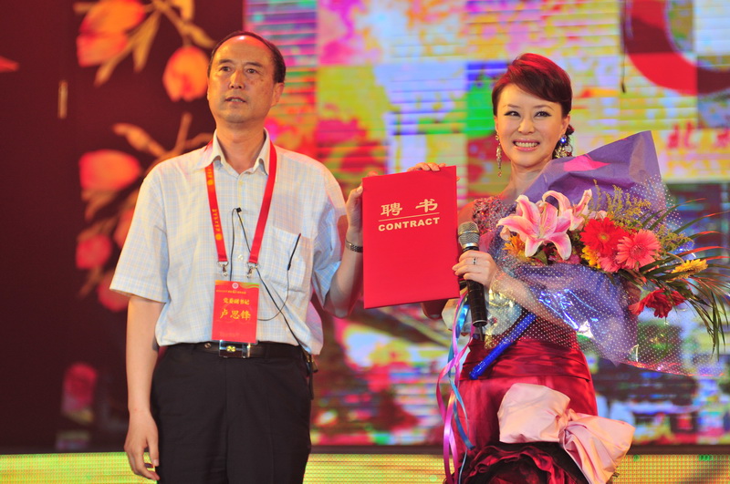 我校六十周年慶典晚會在良鄉校區文體館成功舉辦,特邀嘉賓、著名歌唱家蔡國慶、祖海,著名歌手、超女紀敏佳為晚會獻上了精彩十足的演唱。我校特聘三人擔任我校學生藝術團指導老師。晚會現場,校長譚向勇為蔡國慶頒發了特聘證書,黨委副書記盧思鋒為祖海頒發了特聘證書,副校長呼文亮在為紀敏佳頒發了特聘證書。