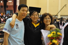 “天人合一”的雕塑前,有一對爸爸媽媽正和女兒一起照相,媽媽說:“畢業(yè)了,很欣慰,付出終于沒有白費。”爸爸說:“以后還是得沿著自己的軌道走,順其自然地發(fā)展。”媽媽又說:“還是得好好學(xué),不是還考研呢嗎!”終于,“咔嚓”幸福的POSE記錄下了孩子畢業(yè)的這一刻。“時間過得真快,現(xiàn)在看到孩子畢業(yè)還能想起當(dāng)初剛送她來上學(xué)時的情景,看著她一路自食其力的成長,作為父母真的很高興。”吳丹的爸爸媽媽這樣告訴記者。