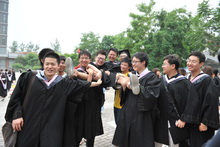 茫茫人群中,兩個年輕的身影身穿學(xué)士服,依偎在一起,微笑著站在鏡頭前。“1、2、3!”畫面定格在美麗的瞬間。他們是金融061的朱鵬澤和賈佳。照完相后,兩人相對一笑。他們來自不同的地方,因為夢想相聚在北京,相聚在北京工商大學(xué),這里,是他們戀愛開始的地方。馬上要離開了,心中充滿不舍之情。“此時此刻,心情很激動,衷心祝愿我們的母校越來越好!” 朱鵬澤告訴記者。也祝福這對戀人幸福。