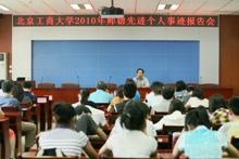 6月23日,學校2010年師德先進事跡報告會在阜成路教三樓351室舉行。報告會由黨委副書記兼紀委書記、工會主席張德玉主持,各相關職能部門主要負責人、各分工會主席、師生代表70余人參加了報告會。