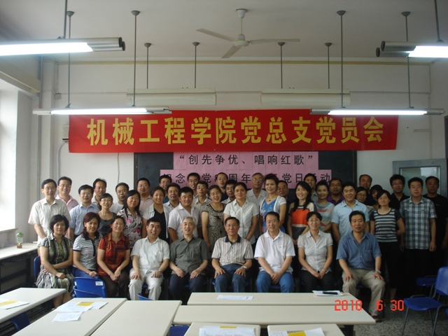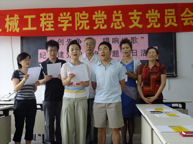 6月30日下午,機械工程學院黨總支舉行了“創先爭優、唱響紅歌”紀念建黨89周年主題黨日活動。全院五個教工黨支部的四十多位黨員都參與到活動中來。謝志華副校長、退休老教授陸守道、石通靈、馬庭均等也應邀參加活動。