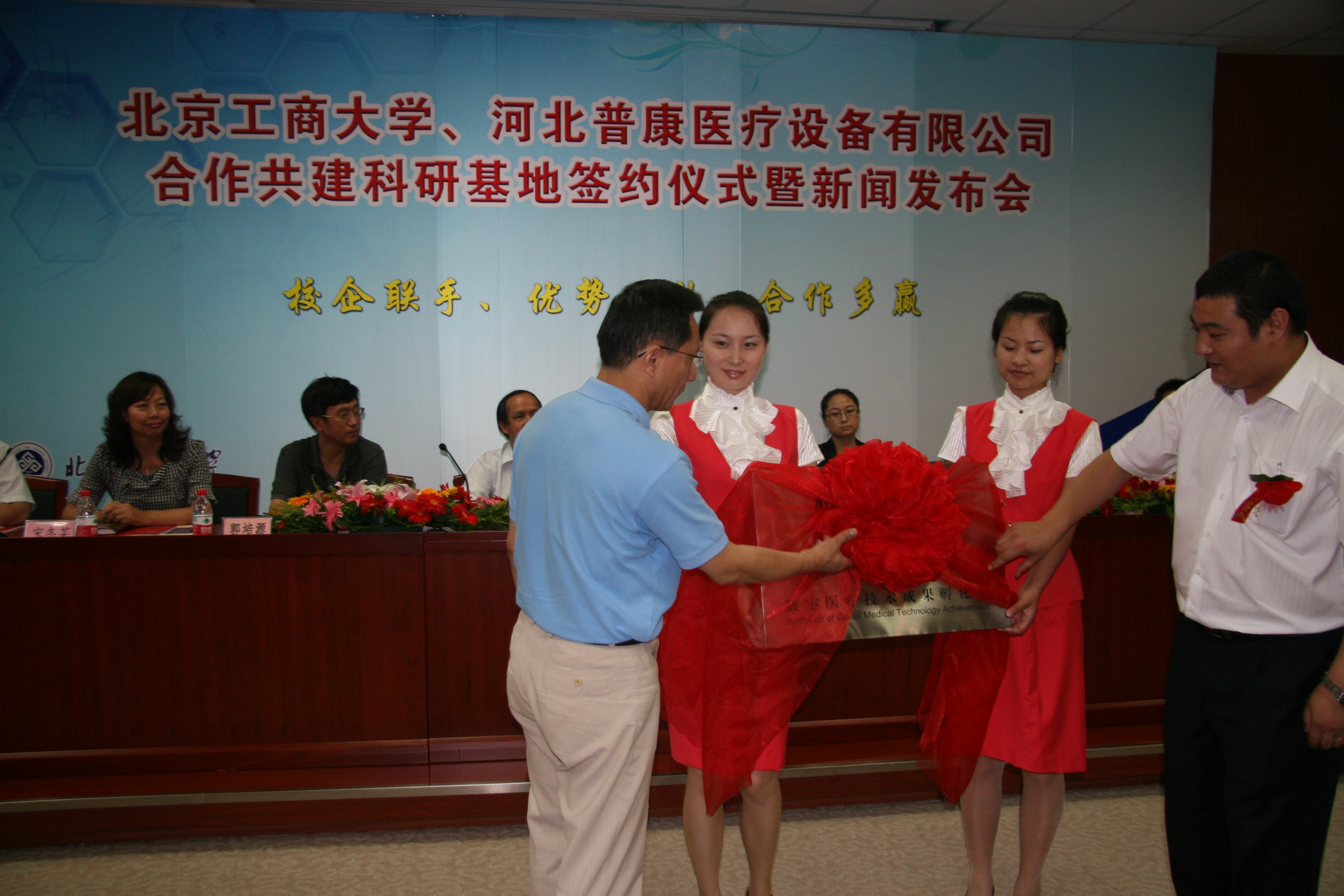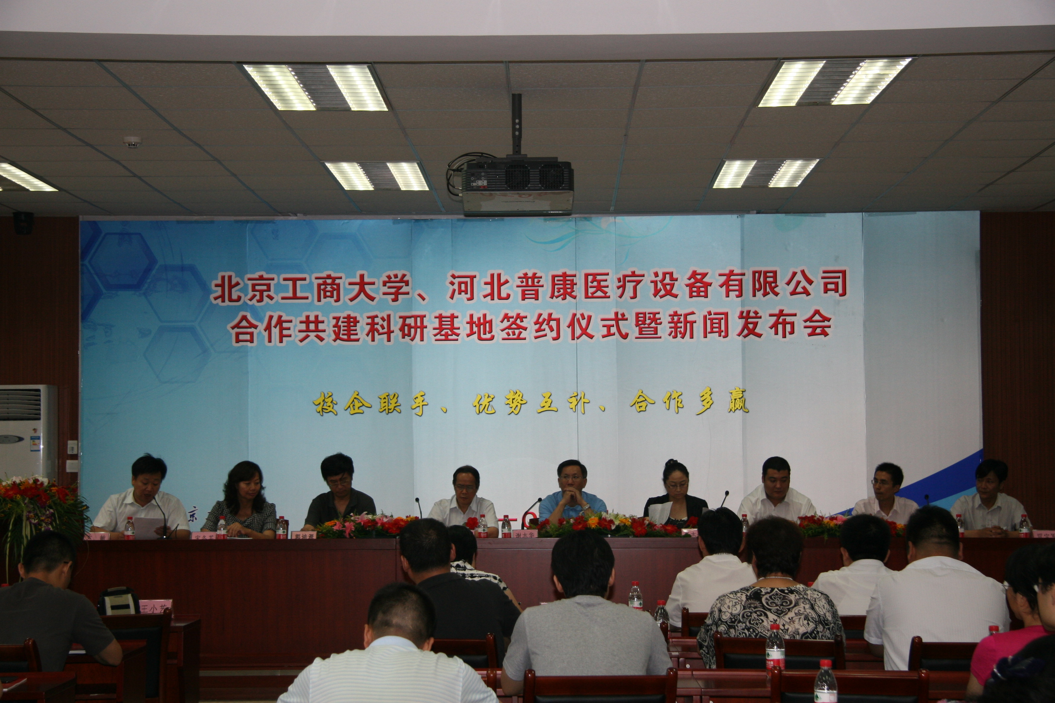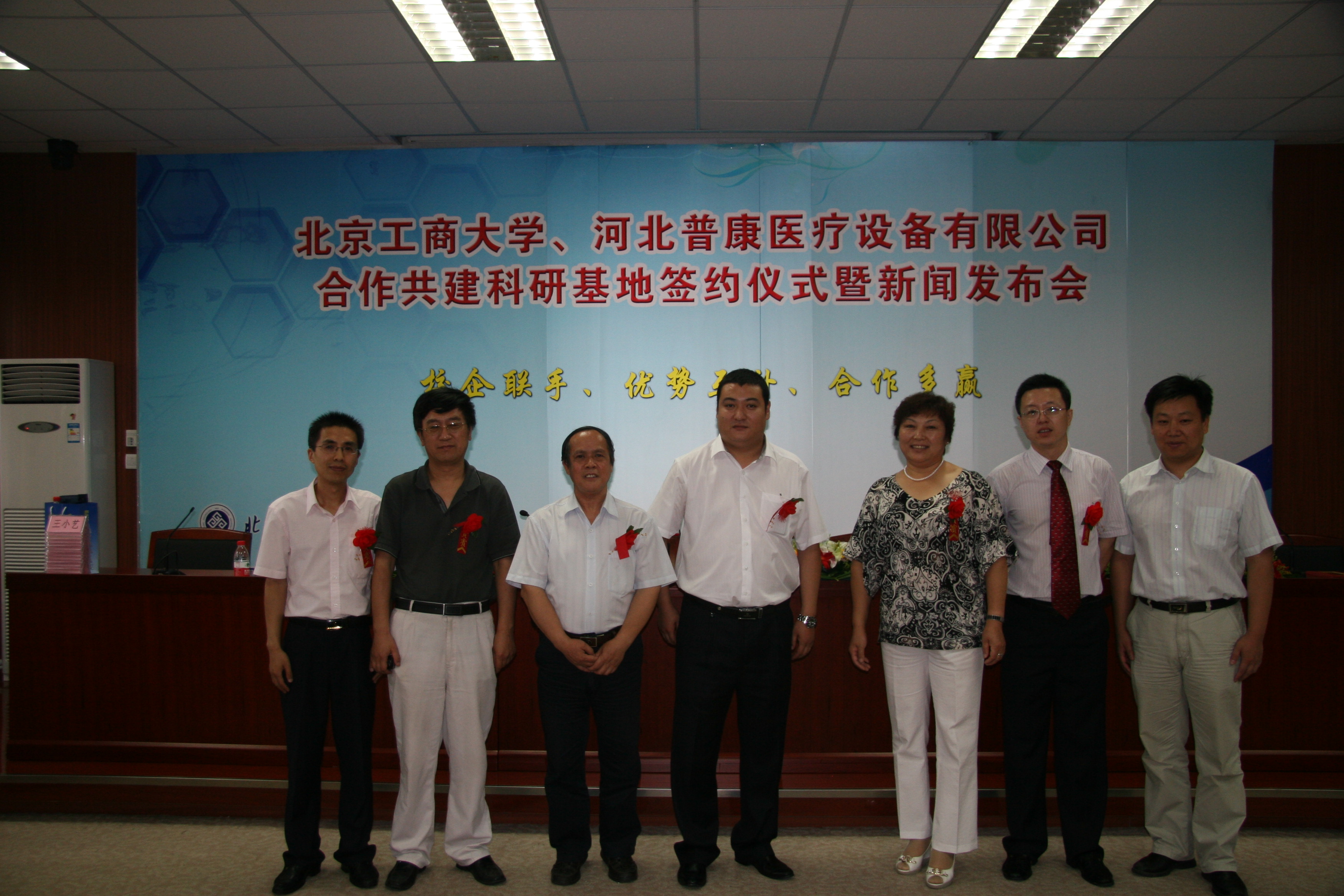 7月1日上午,北京工商大學(xué)、河北普康醫(yī)療設(shè)備有限公司(下簡稱普康公司)校企合作共建科研基地簽約暨新聞發(fā)布會在阜成路校區(qū)隆重舉行。
