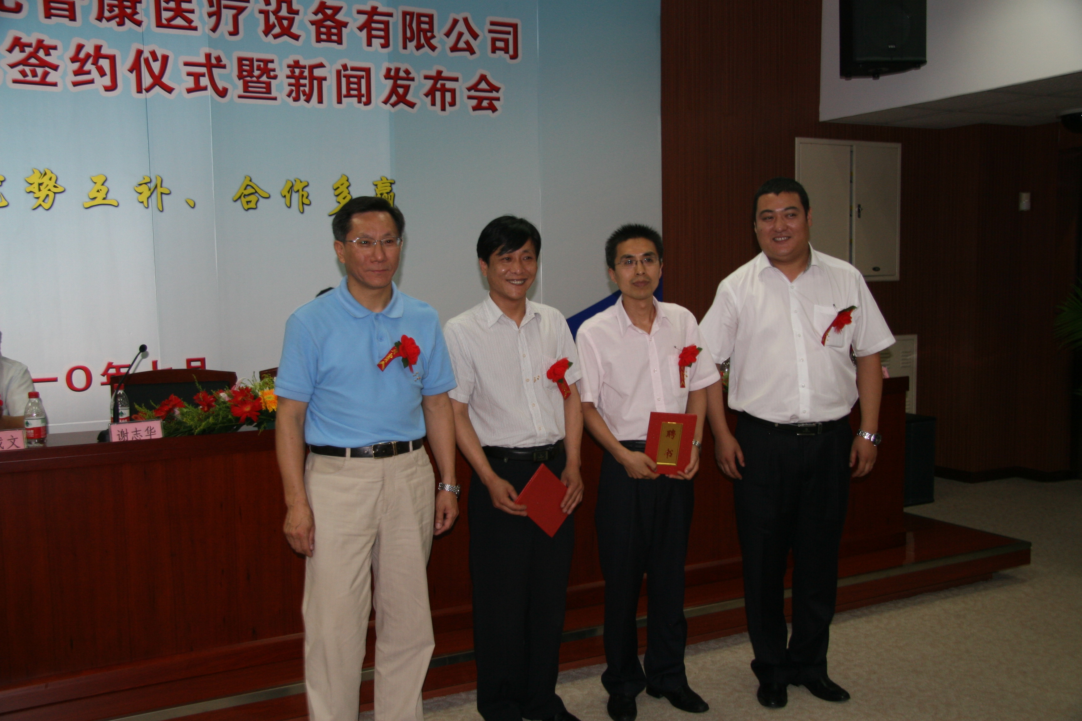 儀式由科學(xué)技術(shù)處副處長王小藝主持。副校長謝志華教授、河北省徐水縣科技局局長崔志婭、普康公司總經(jīng)理柏賀、計算機與信息工程學(xué)院(下簡稱計信學(xué)院)院長劉載文教授共同為“北京工商大學(xué)普康數(shù)字醫(yī)療技術(shù)研發(fā)基地”、“北京工商大學(xué)數(shù)字醫(yī)療技術(shù)成果孵化器”揭牌。科學(xué)技術(shù)處宋冬英副處長代表學(xué)校與普康公司簽訂合同。柏賀總經(jīng)理為計信學(xué)院許繼平博士頒發(fā)研發(fā)基地主任聘書。
