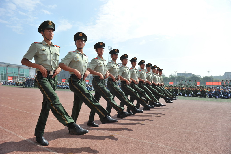 7月12日下午5點,開訓典禮正式開始。2009級3000余名學生進入軍訓時間。