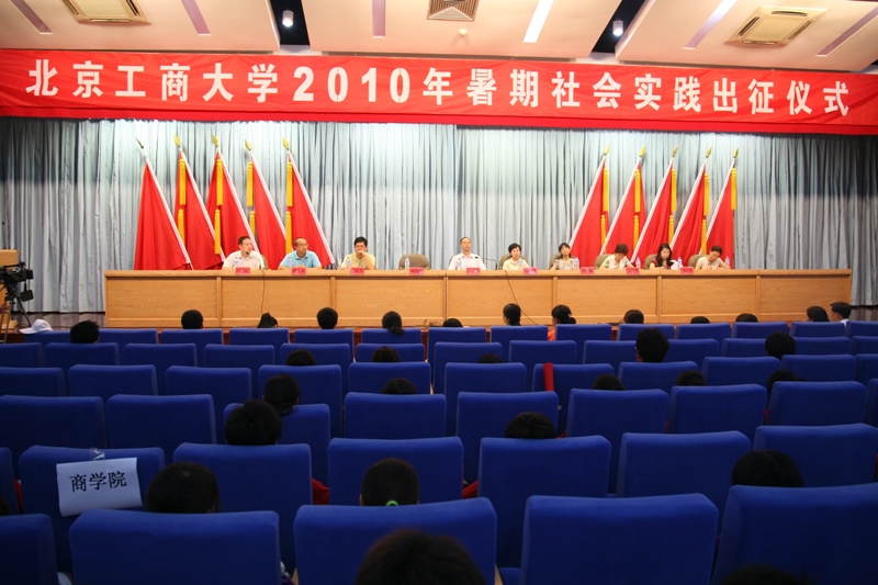 7月21日上午,我校2010年暑期社會實踐出征儀式在良鄉(xiāng)校區(qū)B報告廳舉行。校黨委副書記盧思鋒出席儀式,各學院黨總支副書記、2010年暑期社會實踐各院系分團帶隊老師以及300余名參加社會實踐的學生代表參加會議。