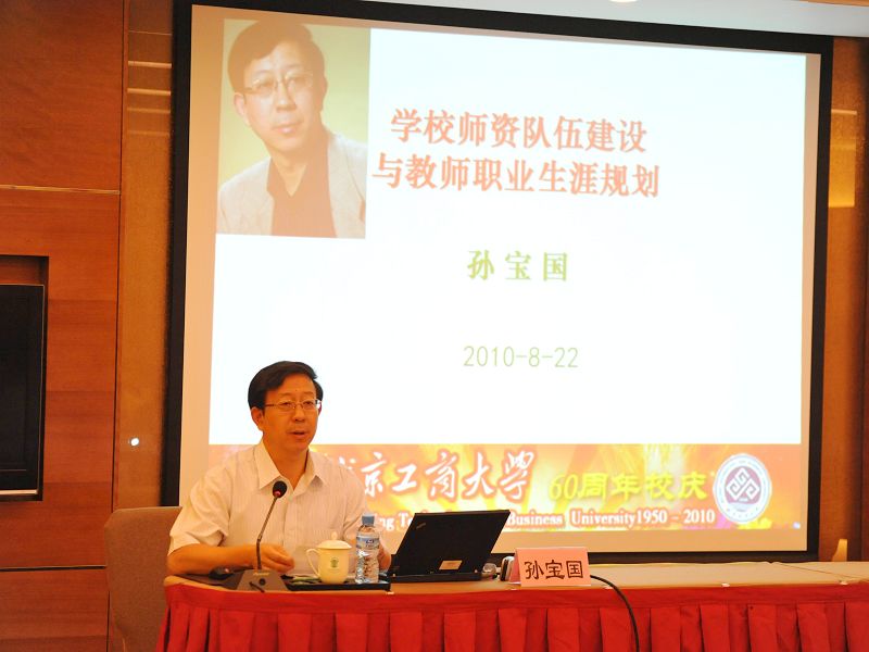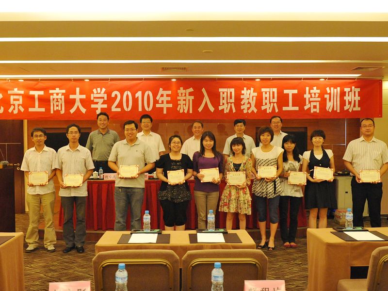 2010年8月22日至24日,學校人事處、教務處和科學技術處在北京南宮溫泉度假酒店聯合舉辦了“北京工商大學2010年新入職教職工培訓班”,61名新入職教職工參加了培訓。校領導譚向勇出席了培訓班開班式,孫堯東出席了培訓班結業式,孫寶國在培訓班作了專題報告。有關職能部門負責人魏中龍、張曉堂、王國順、何明珂、吉濤、陳軻、呂素香,北京市哲學社會科學規劃辦公室副主任李建平、北京科技大學吳愛祥教授也分別作了報告。