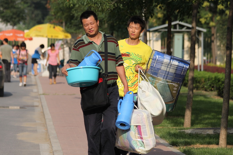 和母親對孩子依依不舍不同,父親更為灑脫,一位從東北送孩子來上學的父親邊擦著臉上的汗邊對記者說:“孩子來了就是來經受鍛煉,涉及學習、生活、交友等等很多方面。獨生子女沒受過什么苦,上大學了,希望兒子能盡快成熟,逐漸成長。”