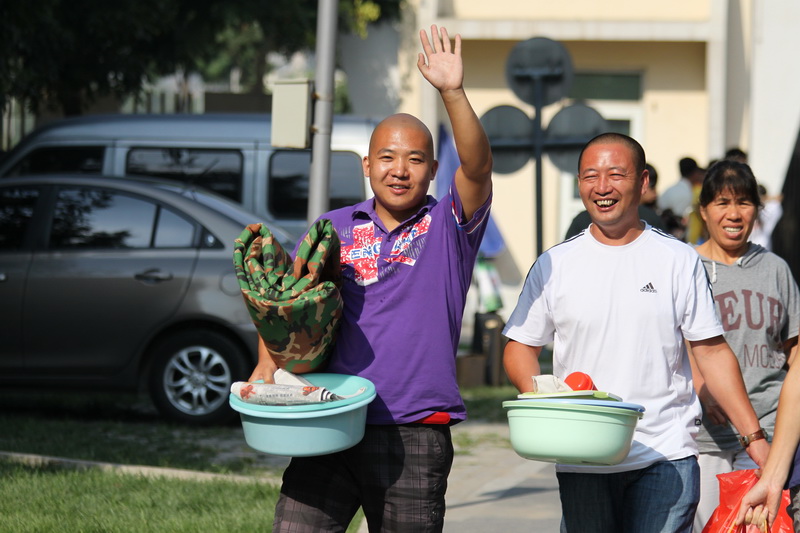 “她從小就是我帶大的,我今年70多歲了,但我今天非得親手把她送進校園!來這兒也為看看環境,我們是回民,看到有清真區,挺高興的。” 坐在陰涼地休息的2010級新生木夢潔的奶奶笑著對記者說。語言中充滿了幸福和對孫女的期望。