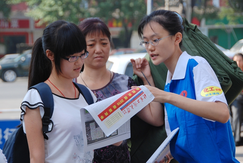 面對化工學院現場的火爆,材料科學與工程系也不甘落后,他們不僅在校門口安排了新生接待人員,并且特別組織了一個“導師組成員”團隊,這些“導師”們全部由大二、大三的學生組成,每個“導師”負責10多個新生的報道安排,全程陪同他們辦理完所有入學手續,并對新生的疑難咨詢進行“傳道解惑”。記者注意到一些學生和家長已經迫不及待地跟隨著“導師”,逛游校園了……