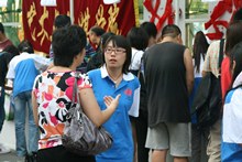 在今天2010級新生報到入學的過程中,各個院系的志愿者們也起到了很大作用,他們有的在各自學院的新生報到處盡職盡責地維持著秩序,有的一遍一遍耐心地回答前來詢問具體報到流程的新生們,還有的非常仔細地核對新生信息確保無誤后將宿舍的鑰匙和新生入學手冊等物品發給新生。所有志愿者都在各自崗位上出色地完成了一天的工作。