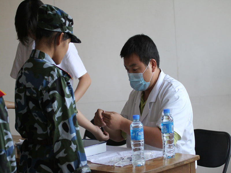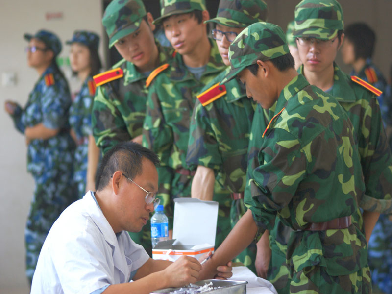 8月29日早8:40,我校2010級新生開始進行結核病篩查,這項工作是由我校校醫院及房山區疾病預防控制中心負責的。新生在教官的帶領下,以營為單位,有序進入文體館一層大廳,并按照醫生的指示進行結核病皮膚測試。