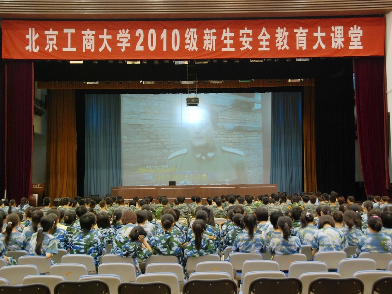 9月2日下午1:30,2010級新生安全教育大課堂在我校良鄉校區文體館二次開課。保衛處處長頓勁松以“消防安全”為主題進行了精彩的演講。講座由保衛處副處長陶偉主持。2010級經濟、藝傳、機械、外語、法學等學院全體參訓學員認真聆聽了本次講座。
