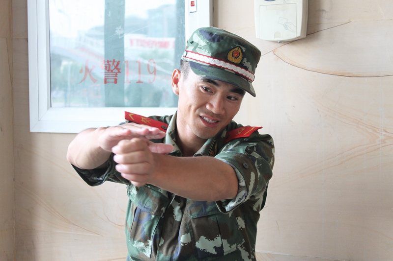 陳磊教官曾任我校09級(jí)軍訓(xùn)女子擒敵拳示范班的班長(zhǎng),對(duì)于他在所帶領(lǐng)的這個(gè)班,陳教官說(shuō):“我覺(jué)得我現(xiàn)在帶的這個(gè)班整體都很好,她們都很認(rèn)真的訓(xùn)練,我希望能把她們都帶入示范班,而且也有這個(gè)信心。”