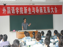 9月1日下午,外國語學院在良鄉校區文二樓306教室舉行了2010級新生與導師見面大會。院長楊懷恩、黨總支書記閆冀生、副院長劉紅艷,英語系、公共外語教學部主任、副主任以及新生導師近30余位老師參加了大會。學院黨總支副書記楊秀萍主持了會議。