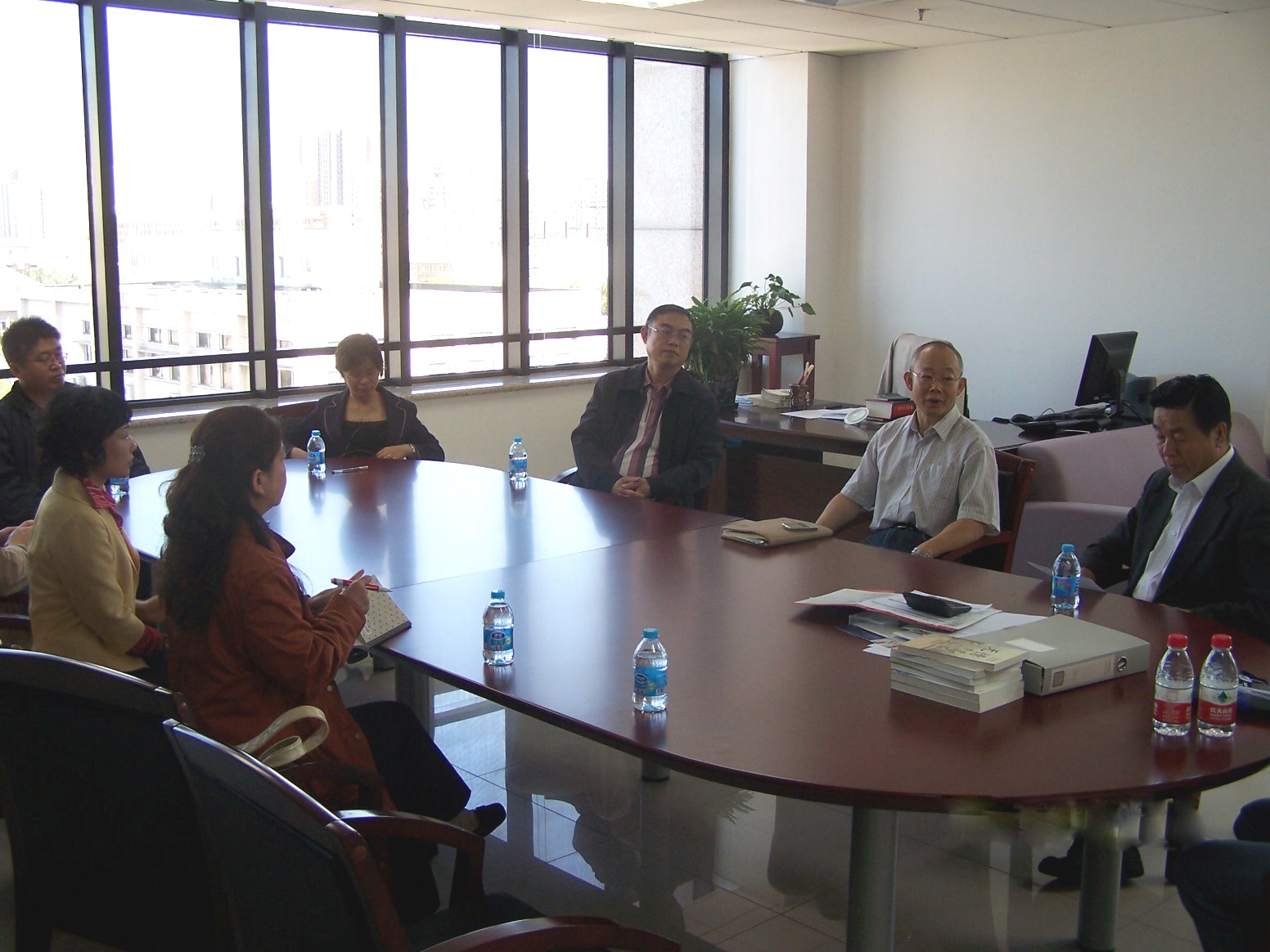 參觀結(jié)束后,對外經(jīng)濟(jì)貿(mào)易大學(xué)主管副校長胡福印、圖書館館長邱小紅與郭書記、李副館長及相關(guān)部門主任針對兩校“十二五”規(guī)劃的構(gòu)建、圖書館如何為學(xué)校教學(xué)和科研提供更完善服務(wù)、隊(duì)伍建設(shè)、學(xué)科館員等共同關(guān)心的問題與我們進(jìn)行了深入細(xì)致的探討。