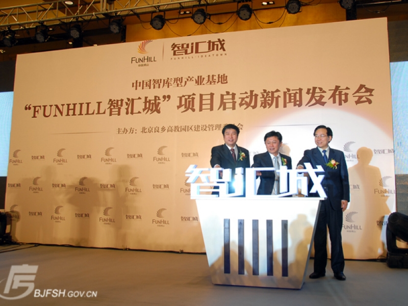 10月15日,房山區良鄉高教園區建設管理委員會在香格里拉大飯店舉辦“中國智慧型產業基地——‵FunHill智匯城′項目啟動新聞發布會”,北京市委、市政府及有關委辦局領導和房山區領導出席會議,我校黨委書記孫堯東、副校長呼文亮以及中國社科院研究生院、北京理工大學、北京中醫藥大學、首都師范大學領導以及首都新聞媒體代表應邀出席會議。