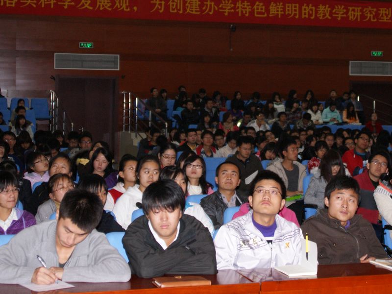 孫寶國(guó)教授從學(xué)做人、學(xué)知識(shí)、培養(yǎng)能、鍛煉身體、磨練意志等方面,結(jié)合自己的求學(xué)和教學(xué)科研經(jīng)歷,為在座師生作了一場(chǎng)生動(dòng)、有趣而又富有導(dǎo)向和啟發(fā)意義的報(bào)告。報(bào)告從上大學(xué)的目的和未來(lái)事業(yè)發(fā)展的目標(biāo)破題,結(jié)合輕工學(xué)科及一代代化工人的發(fā)展,勉勵(lì)同學(xué)們學(xué)會(huì)善待同學(xué)、學(xué)會(huì)忍耐,學(xué)會(huì)擁有過(guò)人的寬容氣度和陽(yáng)光心態(tài),學(xué)會(huì)從小事中樹(shù)立和鍛煉責(zé)任感。