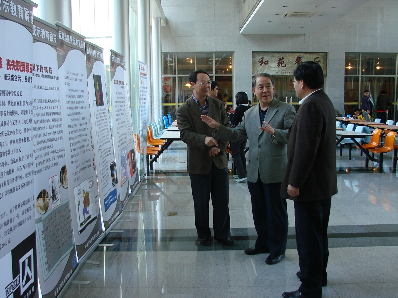 11月2日上午,反腐倡廉警示教育展覽在良鄉校區開展,學校黨委書記孫堯東、黨委副書記兼紀委書記張德玉、副校長張耘、呼文亮和機關一總支的黨員干部們一起認真觀看了展覽。