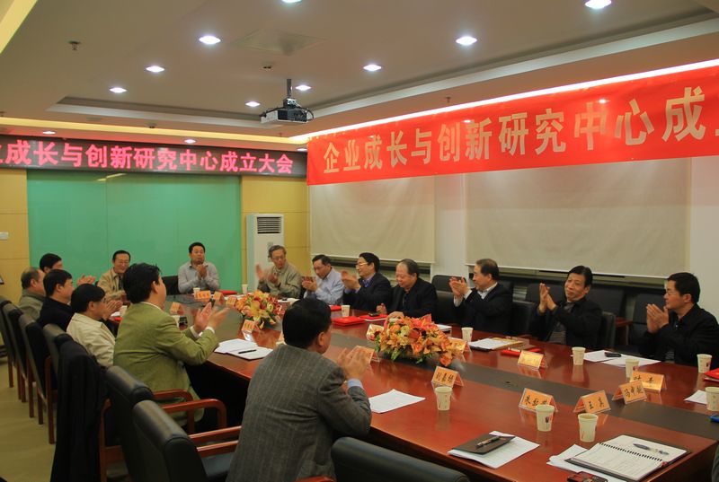 會議由謝志華副校長主持。吳杰書記和孫堯東書記為企業成長與創新研究中心揭牌。孫堯東書記為校外專家頒發了聘書。北京市工商聯調研室主任朱效榮、北京市社會科學院研究員戴建忠、北京泰華創業投資管理有限公司總經理、研究員李岱松、北京佳農永興農業生產資料有限公司董事長高佳木、北京市工商聯經濟處處長李忠厚、北京市工商聯宣教處處長江述高出席會議。北京工商大學科技處處長王國順,商學院楊有紅、龐毅、張永、王真,經濟學院馮中越,以及部分教師代表出席了會議。