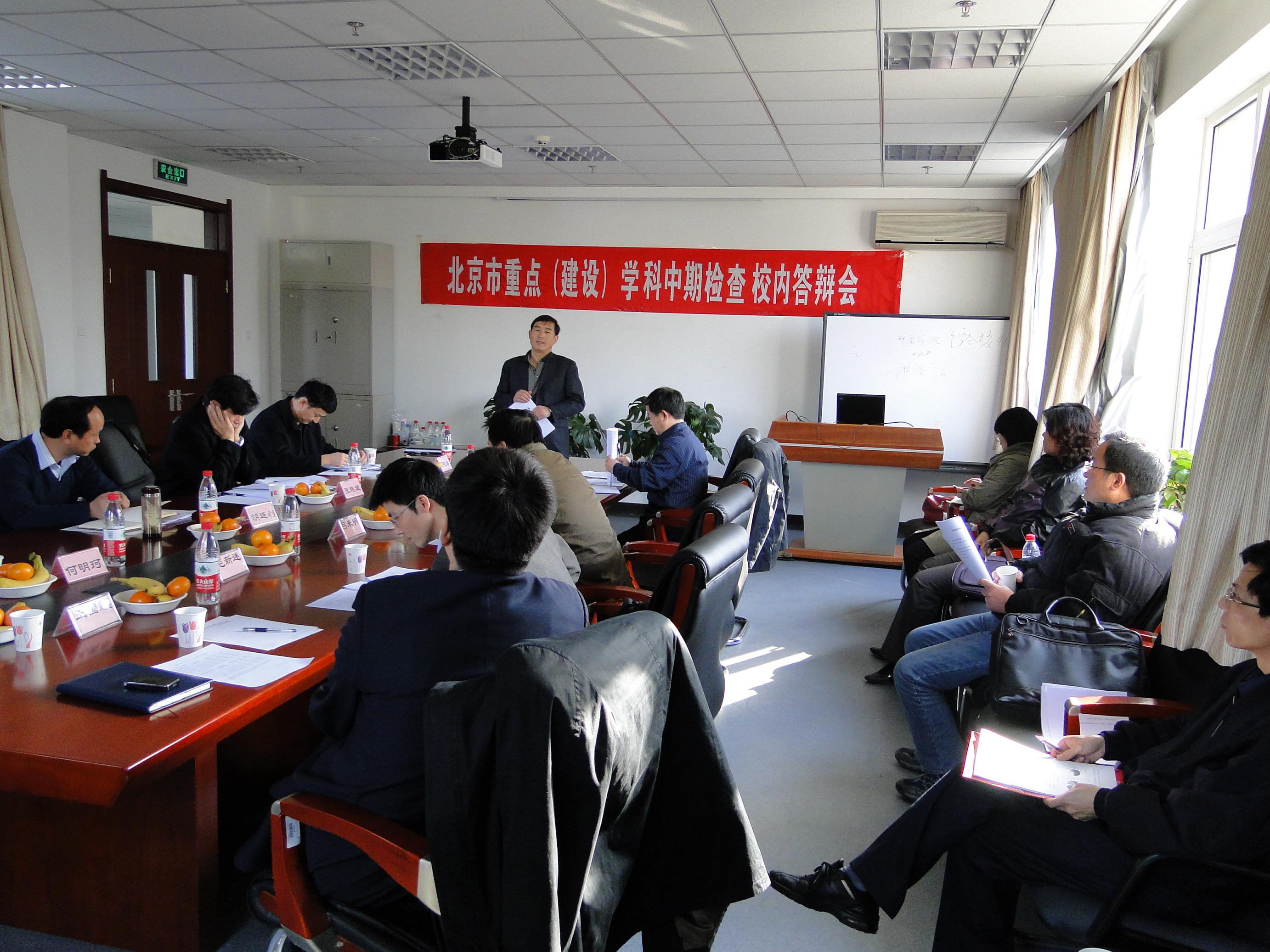11月15日下午,我校在綜合樓415和421會議室分別進行了市重點(建設)學科文科組和工科組的中期檢查校內答辯會。本次會議是我校為了配合北京市教委將在12月進行的重點學科中期檢查,而進行的學校自查工作。本次答辯會我校邀請了來自對外經貿大學、北京交通大學、中國農業大學、首都經貿大學、北京化工大學和北京科技大學等10名校內外專家,對我校的重點學科建設工作給予評價和指導。