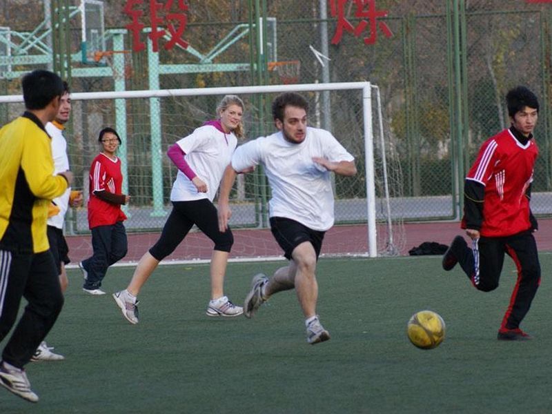 11月11號我校留學生足球隊同校隊開展了一場精彩紛呈的足球賽。賽場上雙方隊員揮汗如雨頑強拼搏,留下一個個精彩瞬間。比賽過程中雙方隊員秉承“友誼第一,比賽第二”的宗旨,讓比賽氣氛即緊張又友好。