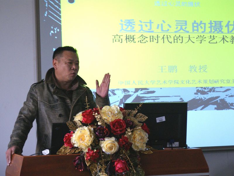 王鵬教授以“時(shí)代的藝術(shù)”為題,對(duì)藝術(shù)教學(xué)方法進(jìn)行了研討。講座中,王鵬教授指出,面對(duì)新時(shí)代,藝術(shù)教學(xué)的藝術(shù)應(yīng)該從藝術(shù)教學(xué)的策劃性、文化性、共情性、交響性、娛樂性、故事性、意義性和創(chuàng)新性這八個(gè)特點(diǎn)來深刻把握,并在實(shí)踐中實(shí)現(xiàn)“世界因時(shí)代而不同,時(shí)代因教育而不同,教育因我們而不同”的職業(yè)理想。