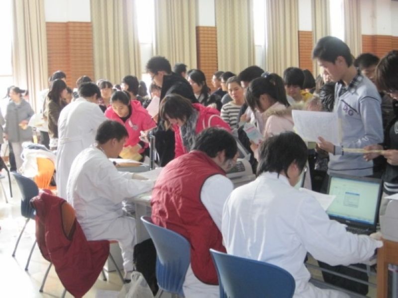 此次無償獻血活動得到了全校學生的積極響應。校紅十字會學生分會提前一周就開始為此次活動做籌備和宣傳工作。12日早8點半,北京市血站的采血車還未到,獻血志愿者們就已趕到采血現(xiàn)場,咨詢獻血知識、獻血流程、填表要求等。直到下午2點獻血活動結(jié)束,前來獻血的同學絡繹不絕。采血現(xiàn)場上,校紅十字會在填表處、等待區(qū)、休息區(qū)、紀念品領(lǐng)取區(qū)等都安排了志愿服務者,并在現(xiàn)場播放了無償獻血宣傳片。獻血同學都自覺排隊等候,現(xiàn)場及氣氛熱烈又秩序井然。