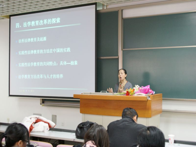 在講座中,陳教授分別從法學教育與人才培養、法律人才特點和教育困境、法學教育的改革和人才的培養、法學教育改革的探索四個方面進行展開。深刻論述了關于我國的通式教育、法律人才的特殊性、目前教育模式的缺陷和困境等問題,并反復強調了自主學習的重要性和“學生是學習的主體”等重要觀點。