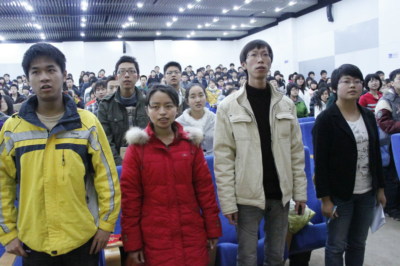 隨后,校黨委副書記盧思鋒為學(xué)員們帶來了黨課第一講——《國情與發(fā)展》,詳細(xì)地分析了在“十一五規(guī)劃”中中國取得的成就與存在的問題,喚起了廣大學(xué)員的自尊心和自豪感。盧書記強(qiáng)調(diào),在座學(xué)員身上應(yīng)肩負(fù)著報效祖國、服務(wù)人民、回饋母校的使命和責(zé)任。課上,學(xué)員們不時為盧書記的精彩講授報以熱烈的掌聲。