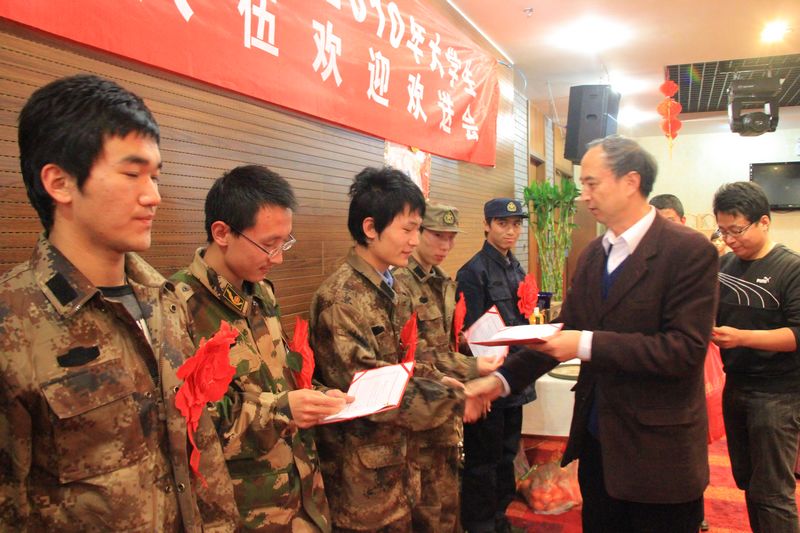 我校黨委歷來十分重視大學生征兵工作,通過開展國防教育宣傳等系列活動,逐漸培養了我校學生關注國防、建設國防的激情。2006年至2009年我校連續4年被評為海淀區征兵先進單位。這些應征入伍的學生投身于火熱的軍營生活,并在軍隊的大熔爐中鍛煉成長,2010年12月剛剛接到中國人民解放軍66112部隊喜報,我校2009年入伍的化工學院李凱被評為2010年度優秀士兵,為我校爭得了榮譽。隨著入伍大學生的逐年增加,為了更好的發揮退伍大學生的作用,學校決定在每年老兵退伍的時候邀請在校退伍學生及退伍后在校工作的教職員工舉辦一年一度的老兵節。