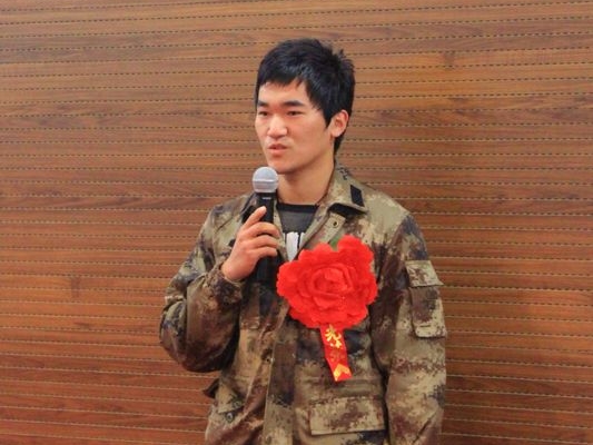 今年退伍返校的2位學生代表發言。他們談了在部隊的收獲和取得的成績,并表示要在復學后繼續發揚在部隊學到的優良傳統和作風,全力投入到學習生活中來。其中一名同學在部隊光榮的加入了中國共產黨。