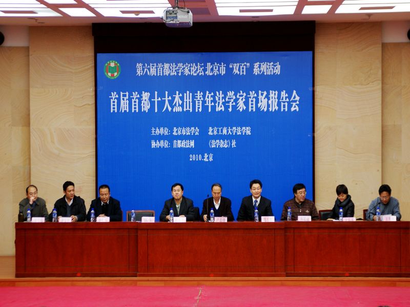 12月6日,由北京市法學(xué)會和北京工商大學(xué)法學(xué)院主辦、首都政法網(wǎng)、《法學(xué)雜志》社協(xié)辦的第六屆“首都十大杰出青年法學(xué)家報(bào)告會”在良鄉(xiāng)校區(qū)模擬法庭開幕。與會的嘉賓有北京市法學(xué)會副會長、特約嘉賓政法大學(xué)常務(wù)副院長張生教授和人民大學(xué)馮玉軍教授,校黨委副書記盧思鋒老師、法學(xué)院院長李仁玉教授、副院長謝安平博士、黨總支副書記文四英老師和院團(tuán)總支書記尹航老師出席報(bào)告會。