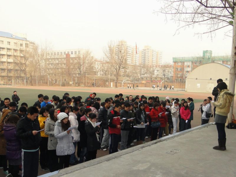 12月9日下午,研究生紀念“一二•九”運動愛國耐力跑活動在阜成路校區(qū)東區(qū)操場舉行。活動以“在成長中銘記”為主題以紀念“一二•九”運動七十五周年。本次活動由研究生部團總支、研究生會、研究生黨建研究工作組聯(lián)合舉辦,得到了全體研究生的積極響應,共計150余人參加了活動。研究生部團總支書記許欣老師參加了活動并講話。