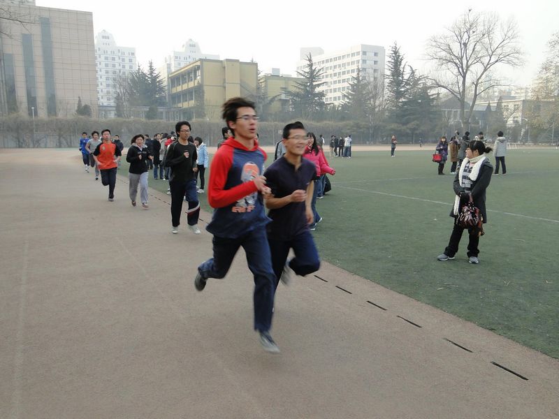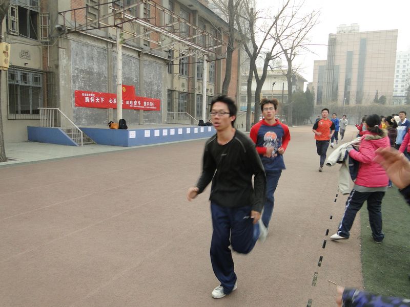 簽名活動后,紀念長跑活動正式開始。從個人耐力跑到接力跑再到集體跑,那一雙雙翻動著的運動鞋和充滿自信的身影,成為了這片冬色校園中一道亮麗的風景線。同學們通過長跑向先輩們致敬,也展現了新世紀新時期下青年學生的良好精神風貌,激情的釋放既是對歷史的紀念也是對未來的呼喊。