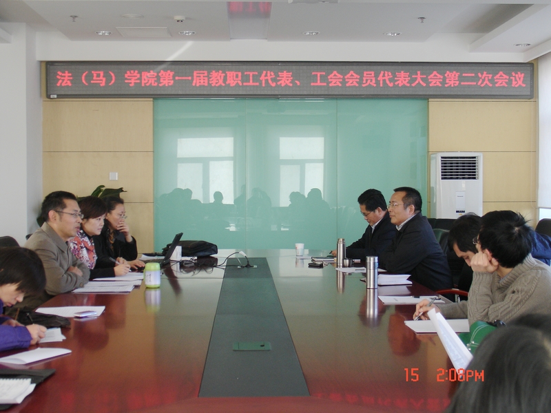 12月15日,法學(xué)院(馬克思主義學(xué)院)在阜成路校區(qū)召開(kāi)了第一屆“雙代會(huì)”第二次會(huì)議。會(huì)議由副院長(zhǎng)、分工會(huì)主席劉東超主持,校黨委副書(shū)記、工會(huì)主席張德玉出席會(huì)議并講話(huà),學(xué)校工會(huì)劉晶應(yīng)邀出席。學(xué)院黨總支書(shū)記張秀芬、院長(zhǎng)李仁玉、副院長(zhǎng)謝安平、副書(shū)記、分工會(huì)副主席文四英以及21名“雙代會(huì)”代表參加了此次會(huì)議。