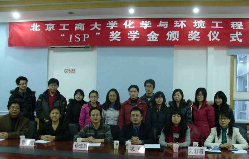 日前,化學與環(huán)境工程學院各項社會獎學金頒獎儀式相繼舉行。繼“鐘香駒教授獎學基金”頒發(fā)之后,12月22日和23日,化學與環(huán)境工程學院在化工樓會議室分別頒發(fā)了“ISP”獎學金和“中國日化院”兩個專業(yè)獎學金。領(lǐng)先特品(上海)有限公司北亞地區(qū)個人護理產(chǎn)品技術(shù)服務(wù)經(jīng)理凌峰先生及劉莉莉女士,中國日用化學工業(yè)研究院李秋小副院長,化學與環(huán)境工程學院院長兼書記徐寶財教授、副院長曹學麗教授及獲獎學生參加頒獎儀式。頒獎儀式由總支副書記何猛老師主持。
