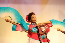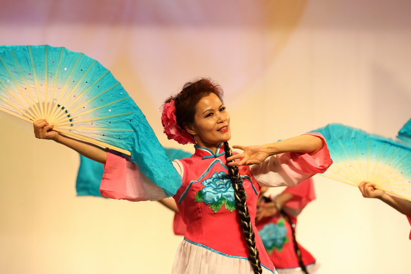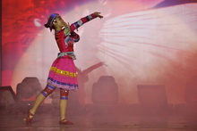 教職工隊(duì)伍則是載歌載舞歡慶元旦,悠揚(yáng)婉轉(zhuǎn)的民歌聯(lián)唱和熱情優(yōu)美的民族舞《趕春》,讓人眼前一亮。粉紅色的衣服,映襯著藍(lán)色的蒲扇,旋轉(zhuǎn),揮扇,跳躍,一副春意盎然的優(yōu)美畫卷展現(xiàn)在觀眾眼前,熱情的舞姿融化了冬日的冰雪,燃起了春日的希望。