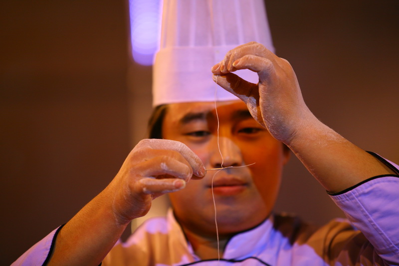 藝術(shù)來源于生活,來自于食堂、保潔、公寓、維修、車隊(duì)的后勤一線職工用辛勤的勞動(dòng)為觀眾展現(xiàn)了《勞動(dòng)者的風(fēng)采》。最吸引眼球的莫過于食堂師傅們的絕技展示,細(xì)可穿針的拉面、蒙眼切“蓑衣黃瓜”,栩栩如生的龍騰雕刻贏來陣陣掌聲。