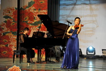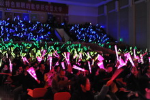 隨著指揮代美川子手中指揮棒的揮舞,整個(gè)會(huì)場(chǎng)響起美妙的《歡樂曲》,快樂的音符在全場(chǎng)跳動(dòng)。《薩克斯的桑巴舞》令人沉醉,和著優(yōu)雅的曲子,觀眾揮動(dòng)著熒光棒。