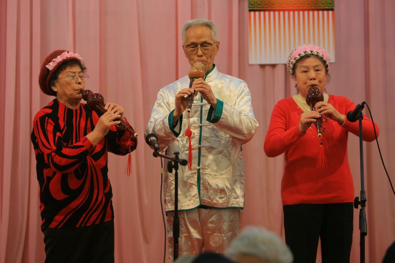 會上,金樂藝術團的老同志為大家表演了軍樂小合奏、小合唱、扇子舞、京劇、獨唱、時裝秀、舞蹈等,博得觀眾一片喝彩。