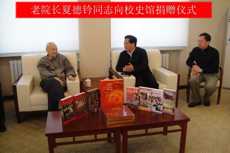 1月24日,夏德鈐教授將收藏的政治局常委李長春贈送給他的《復興之路》等九套電視片,全部轉捐贈給學校。黨委副書記、紀委書記張德玉同志代表學校授贈,并表示感謝。