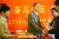 盧副書記代表學校領導向留校學生贈送了節日禮品、慰問金、餐券和電話卡。祝愿同學們在新的一年里學習進步、健康快樂。