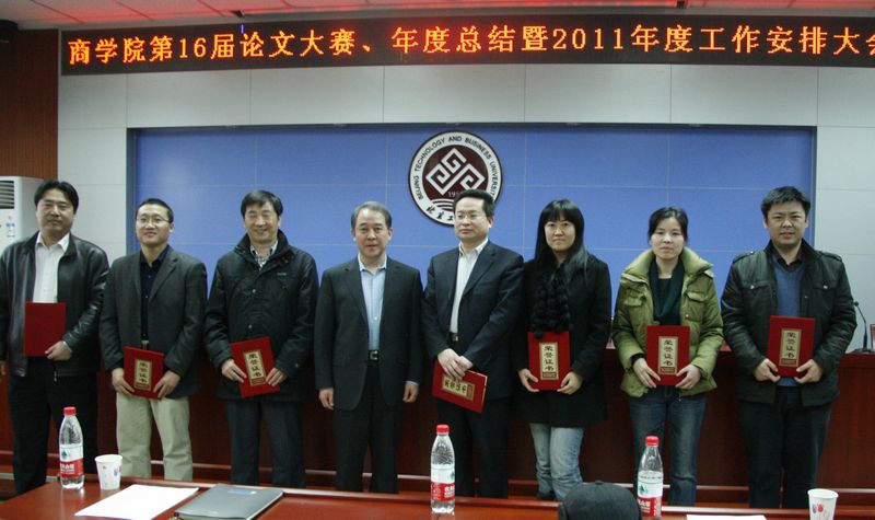 2月25日,新學期開學第一天,商學院召開第16屆論文大賽表彰大會暨2010年度總結、2011年度工作安排大會。學校黨委書記孫堯東、原副校長李殿富及商學院全體教師參加大會。