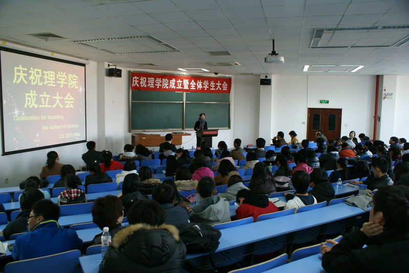 3月9日下午良鄉(xiāng)校區(qū)理學(xué)院召開成立后首次全體學(xué)生大會。副校長李朝鮮、學(xué)生處處長呂素香、理學(xué)院院長、黨總支書記曹顯兵、副院長何聰芬、李寶河、計信學(xué)院黨總支副書記鄭喜姣及原輔導(dǎo)員、理學(xué)院數(shù)學(xué)系主任李晉明及學(xué)院辦公室、教務(wù)、學(xué)生管理的全體老師及良鄉(xiāng)校區(qū)全體學(xué)生和畢業(yè)班學(xué)生代表參加大會。理學(xué)院黨總支副書記田宏主持。