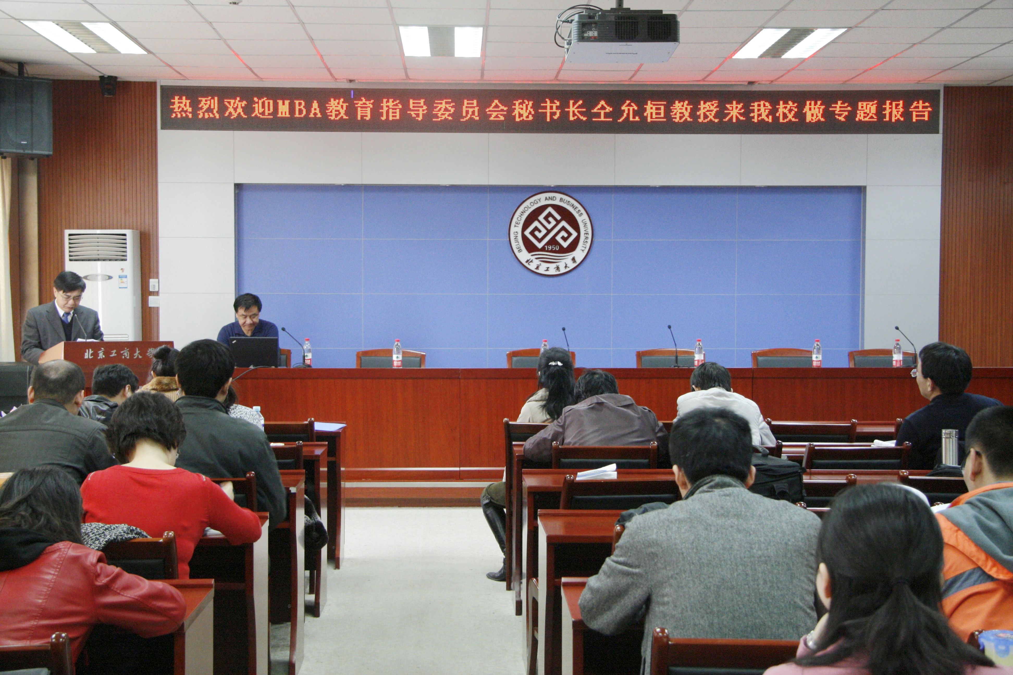 3月19日下午,應我校MBA教育中心邀請,MBA教育專家、全國MBA教育指導委員會秘書長仝允桓教授及全國MBA教育指導委員會秘書處辦公室主任王萍老師來我校考察指導工作。仝允桓教授給我校MBA學生做了“如何寫好MBA學位論文”的專題報告,隨后與有關部門領導、MBA任課教師及MBA教育中心工作人員舉行了座談會。座談會后,譚向勇校長親自接見了兩位專家,并對專家的考察指導表示歡迎。