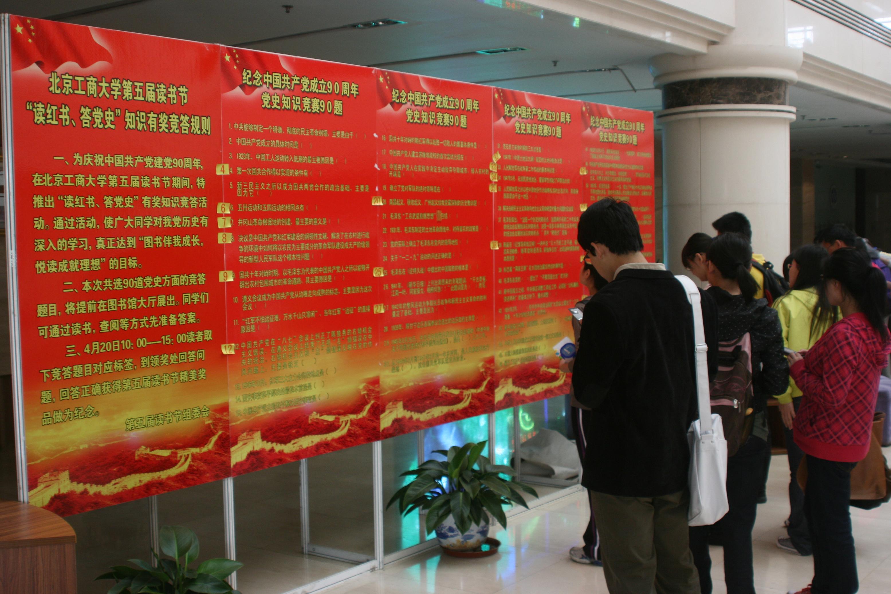 為迎接中國共產黨建黨90周年,圖書館參考咨詢部還在流通大廳舉辦了“讀紅書、答黨史”有獎競答活動。