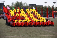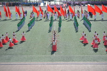法(馬)學院的131名同學用自己手中五彩紛呈的翻花,精心變化出許多圖案,并精心拼出了“90”的字樣。他們以獨特的方式為建黨90周年獻禮。