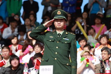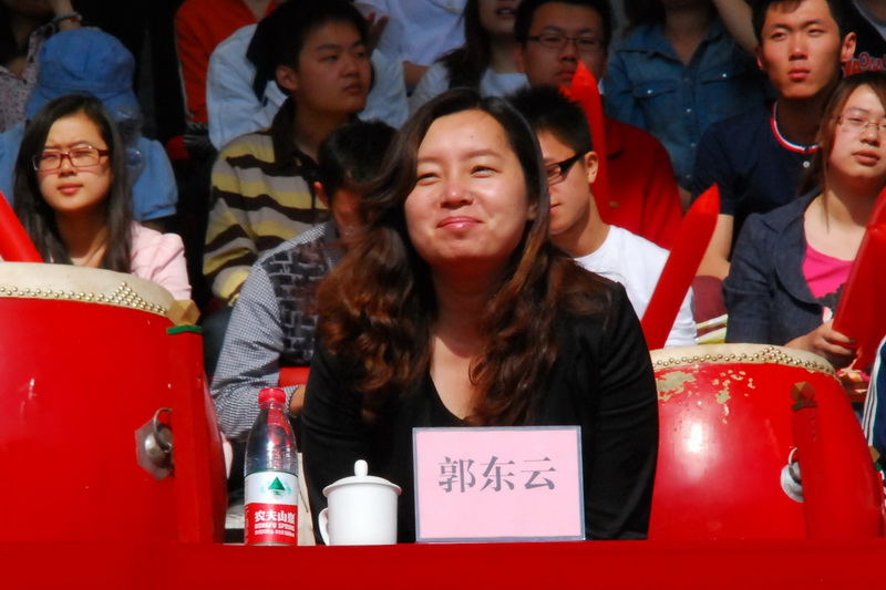 隨后,各院、部進行了精彩的學生啦啦操展示賽。作為今年運動會開幕式首次出現的節目,啦啦操由各院系師生精心設計編排,將藝術與體育完美地結合在一起,充分體現了廣大師生的智慧與創意。動感十足的機器人舞,充滿春天氣息的芭蕾舞,色彩繽紛的雨傘舞,青春靚麗的紙扇表演,優雅迷人的華爾茲……各具特色的節目輪番上演,讓人目不暇接;形式多樣的表演,為觀眾獻上一場精彩的視覺盛宴。房山區體育局副局長郭東云贊道:“各個學院的表演都很有創意,充分體現了大學生的創新精神。”